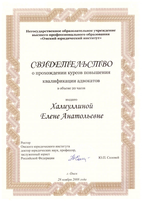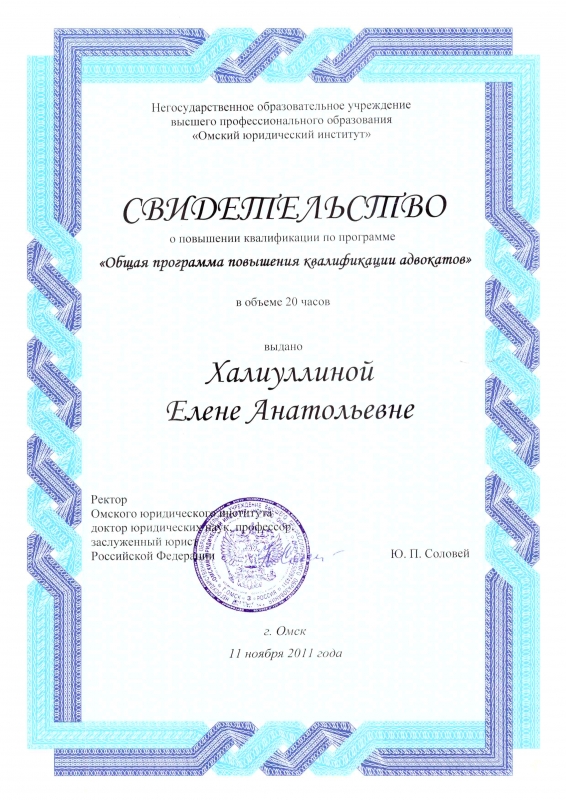 Елена воспитывает стажеров – будущих адвокатов, делится профессиональным опытом с коллегами, участвуя в научно-практических конференциях и семинарах.
